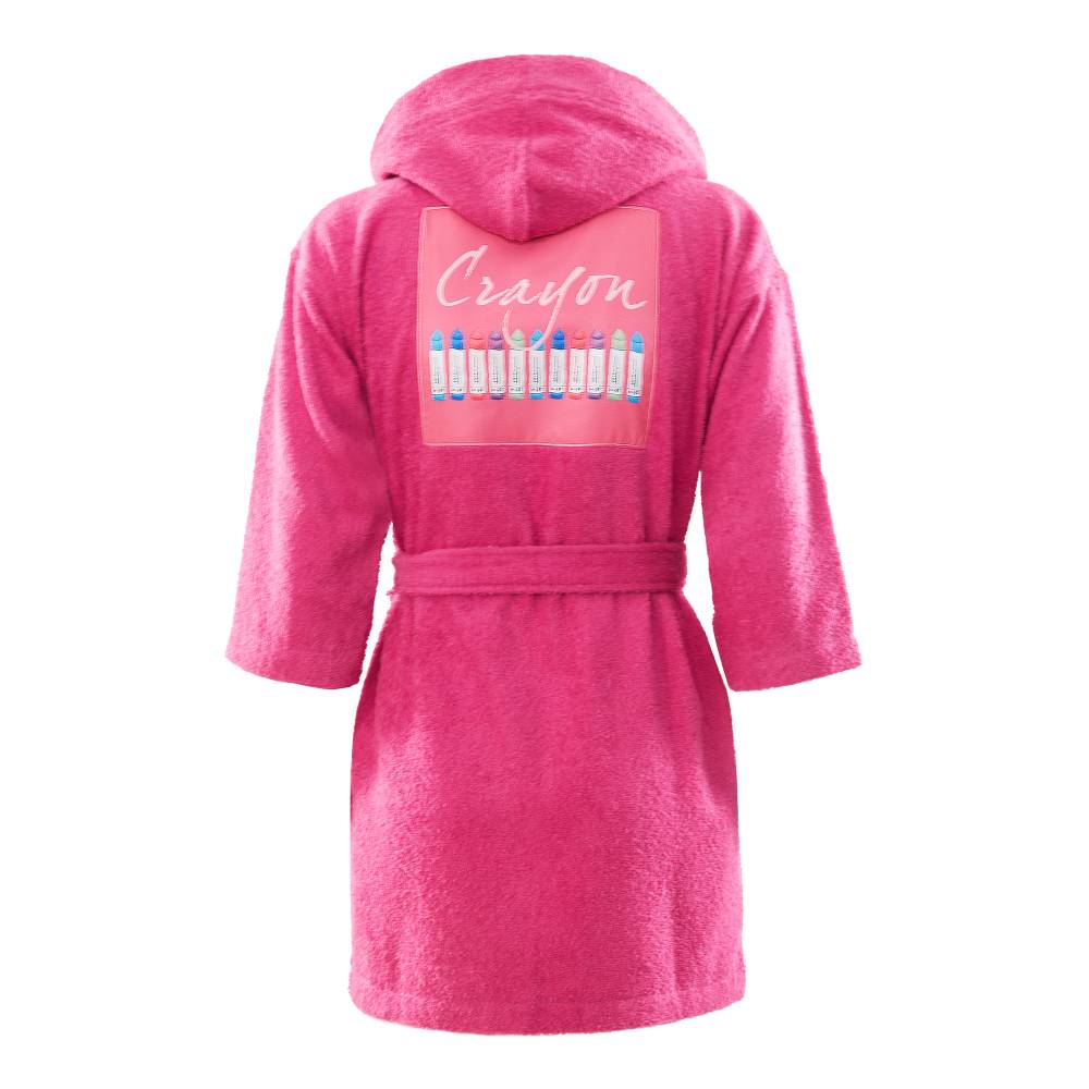Accappatoio Crayon in morbida spugna di puro cotone della collezione Imagine kids. Nella stanza dei sogni di ogni bimbo, pastelli a cera, matite colorate e pennelli sono un piccolo tesoro per creare straordinari capolavori. Patch sul retro in stampa digitale ad altissima definizione.