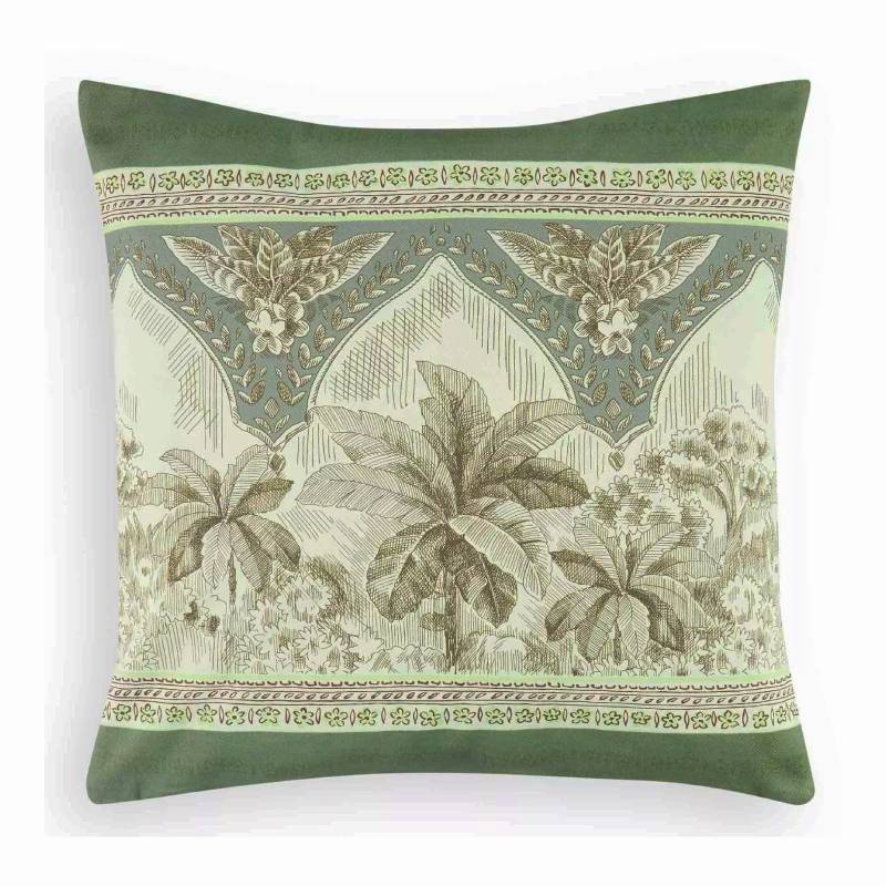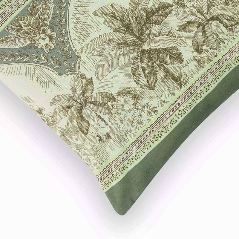 Il cuscino arredo Bassetti Boboli V1 è un elemento decorativo unico che unisce l'eleganza della natura esotica con la qualità artigianale di Bassetti. Questo cuscino presenta un motivo floreale tropicale su sfondo verde intenso, che crea un'atmosfera rilassante e sofisticata.