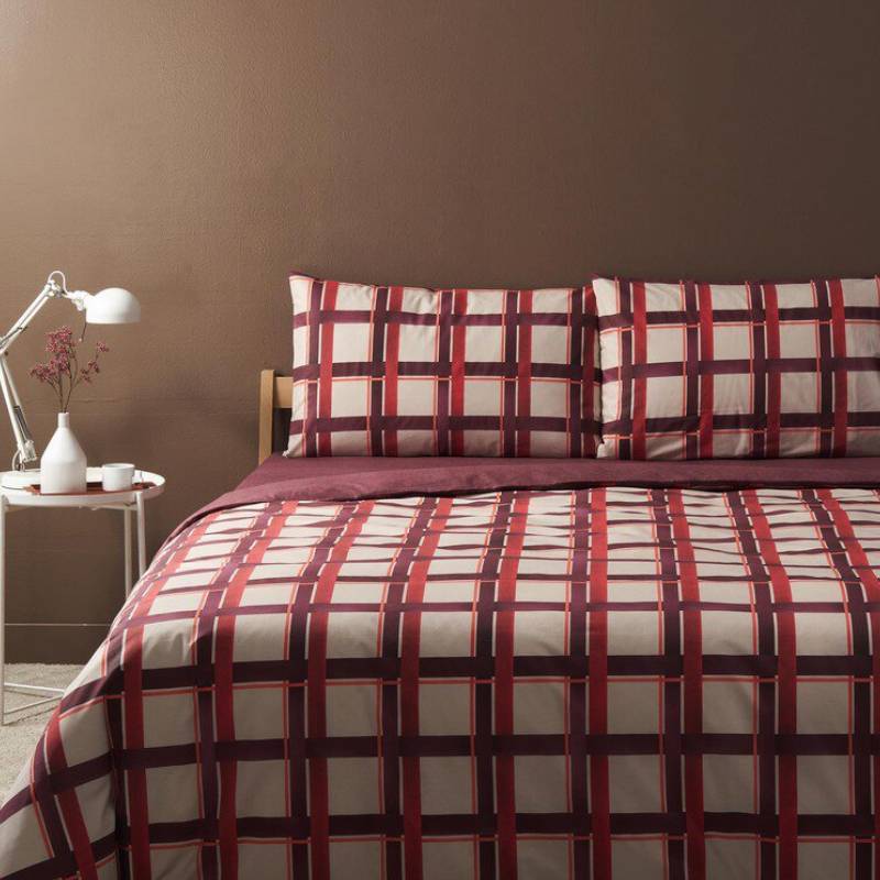 Completo copipiumone CHECK realizzato al 100% in puro cotone, double-face. Il completo si compone di federe a sacco, copripiumone e lenzuolo ad angolo. Il completo copripiumone Check si ispira al concetto di habitat inteso come luogo e ambiente in grado di garantire un confort e una qualità della vita ideale. L'ambiente "casa" è in posto in cui l'incanto della natura e le geometrie vintage danno vita proprio a questo concetto. Lo stile tartan della stampa Check rimanda alla stagione invernale, al tepore della casa e al caldo di un camino acceso. La semplicità di un intreccio di righe sfumate crea un gioco geometrico valorizzato da un fondo neutro.