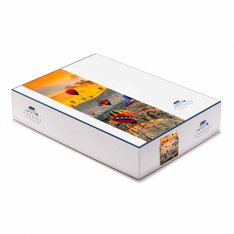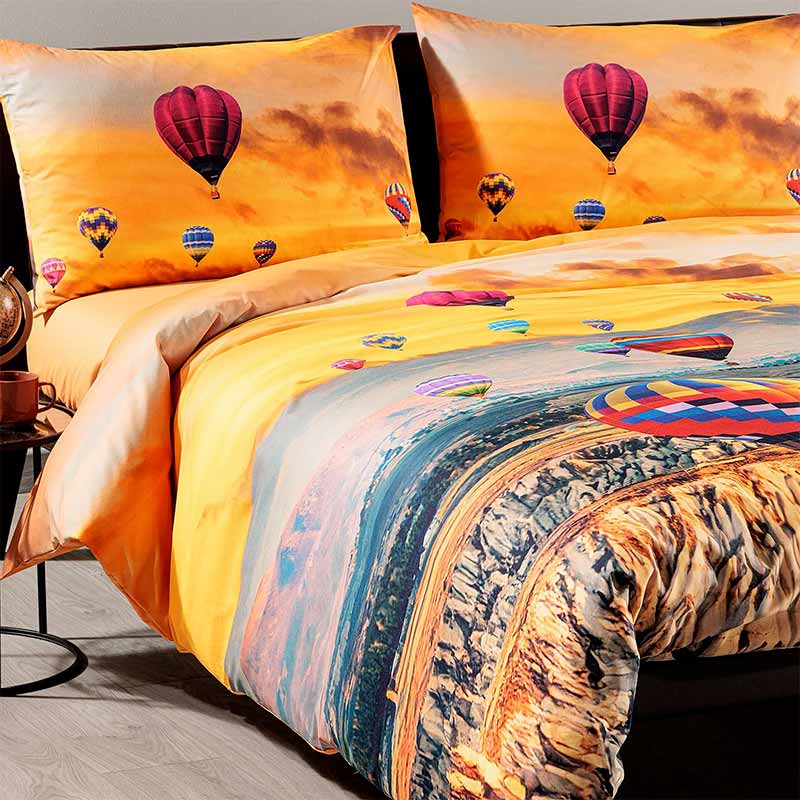 Porta l'incanto della Cappadocia nella tua camera da letto con il copripiumino Cappadocia di Caleffi. La stampa vibrante raffigura mongolfiere colorate che fluttuano sopra un paesaggio mozzafiato, creando un'atmosfera di tranquillità e meraviglia. Perfetto per chi ama i viaggi e i paesaggi unici, questo copripiumino trasforma il letto in un'opera d'arte.
