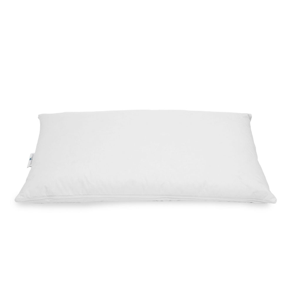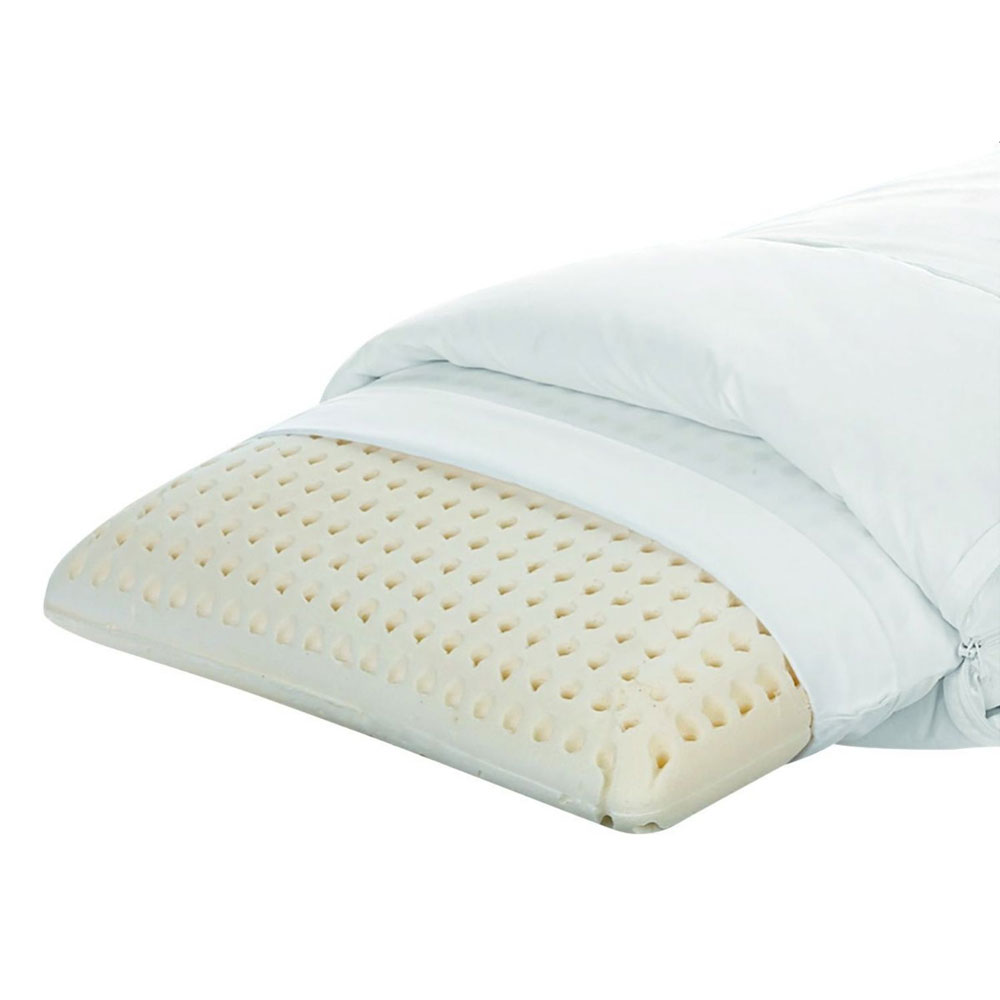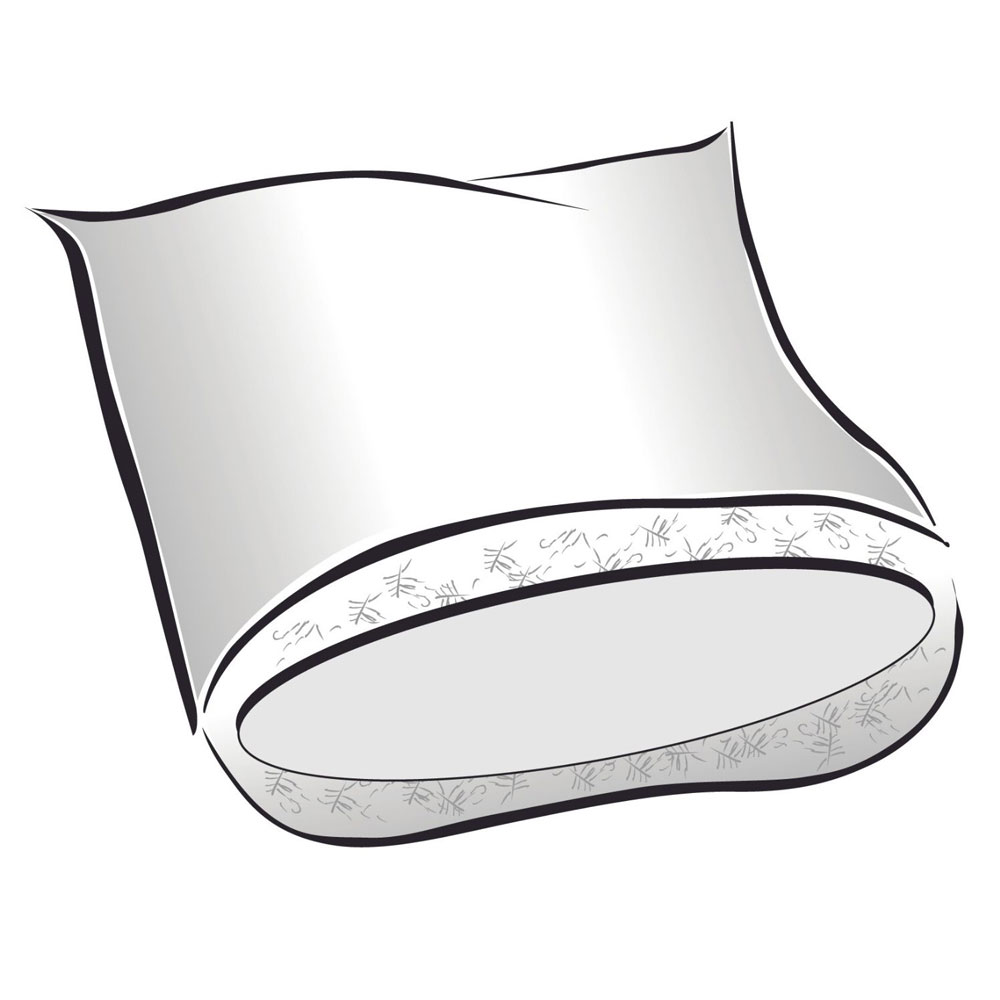 Nucleo in schiuma viscoelastica (memory) a forma di saponetta microforata, guscio esterno in piumino per combinare sostegno e morbidezza.