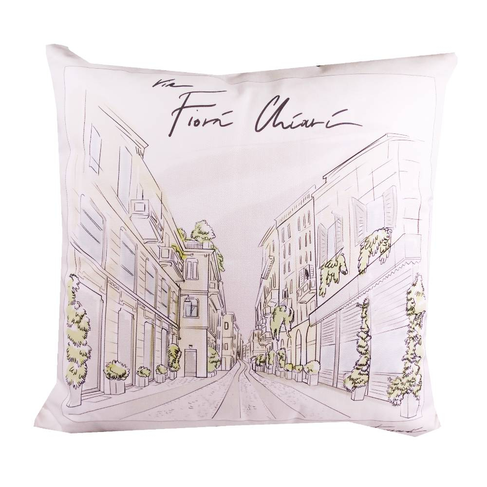 Dona un tocco di classe al tuo living con questo bellissimo cuscino TRUSSARDI, raffigurante le vie più emblematiche della città di Milano. Realizzato in puro cotone è l'ideale per ravvivare l'ambiente.