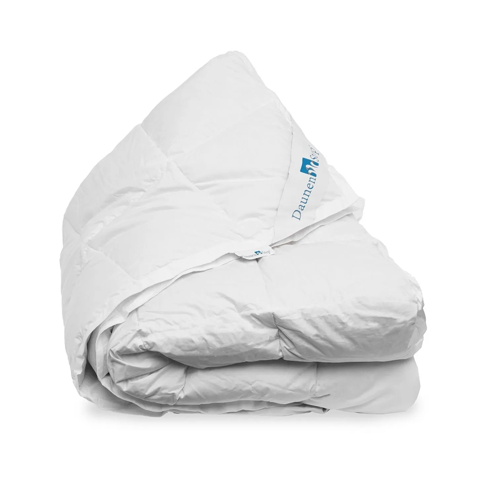 La misura 250x220 cm garantisce un avvolgimento superiore rispetto allo standard matrimoniale. La combinazione di cotone Ultrasoft, imbottitura 850 CUIN e struttura 4 Stagioni rende questo piumino una delle eccellenze assolute del mondo Daunenstep: leggero, caldo, anallergico e naturalmente confortevole.