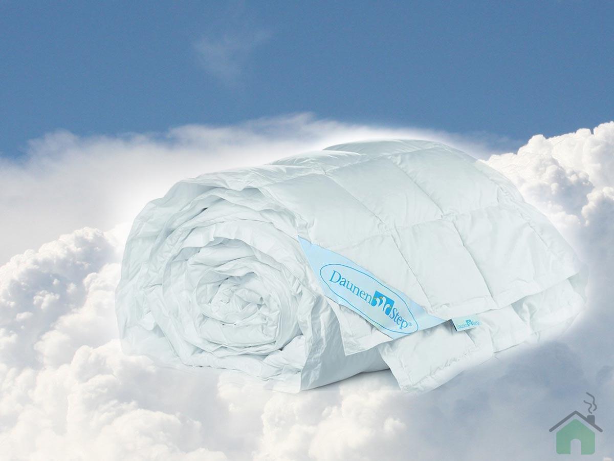 Piumino Daunenstep D800 4 Stagioni singolo MAXI, composto da due piumini unibili tramite asole. Rivestimento in cotone Batista Ultrasoft, anallergico e traspirante. Imbottitura 100% piumino con potere di riempimento 850 CUIN per massimo comfort naturale tutto l’anno. Misura: 155x220 cm.