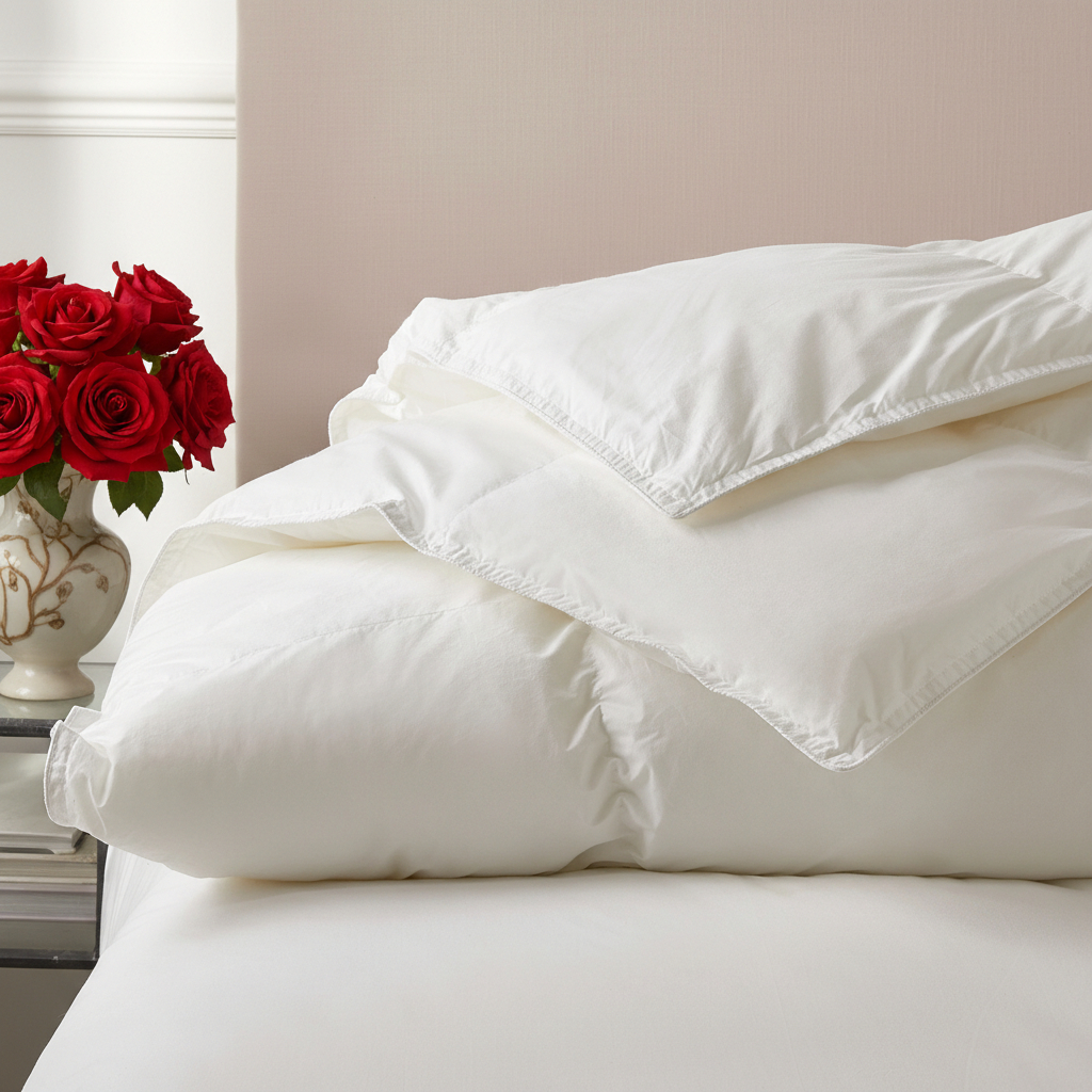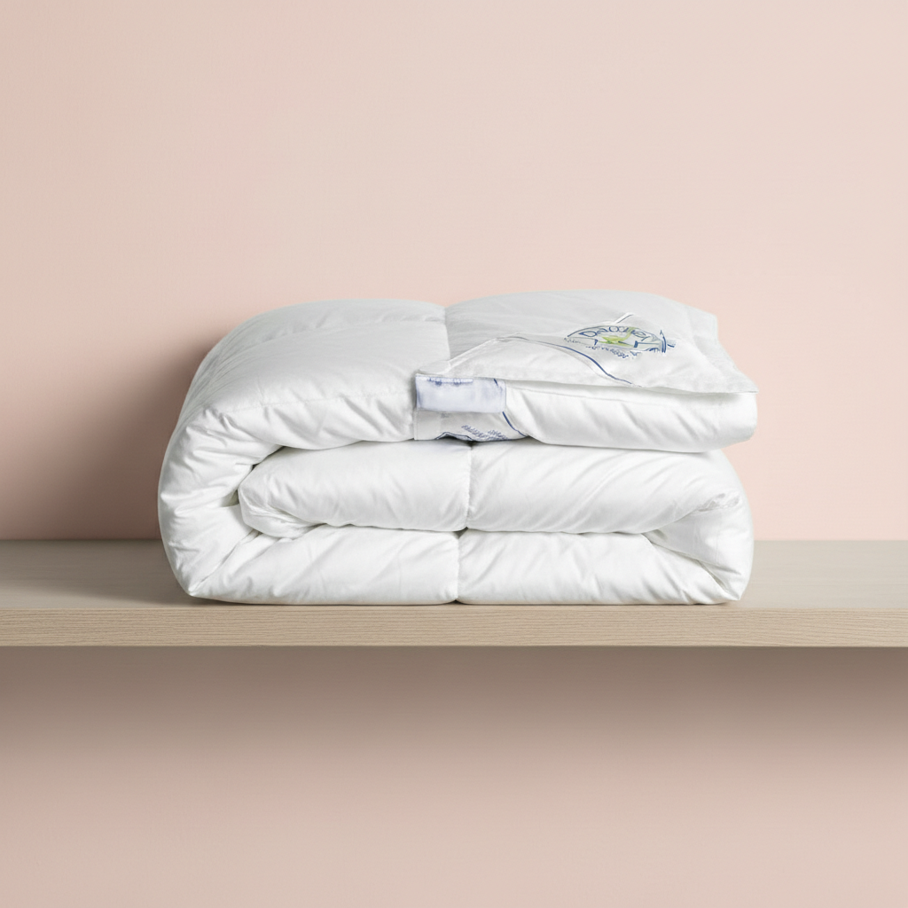 Il confezionamento a cassette con fettucce interne mantiene l’imbottitura uniforme, evitando spostamenti del piumino e garantendo una distribuzione omogenea del calore.