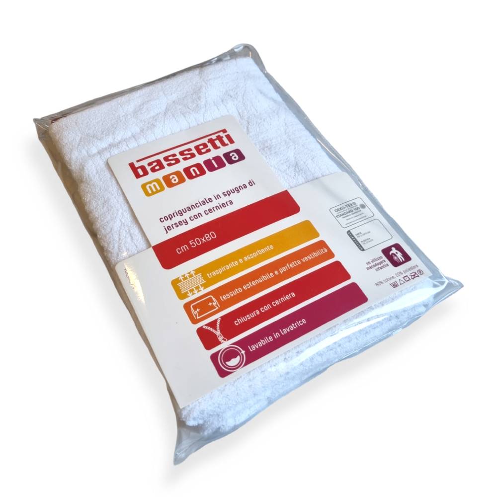Copriguanciale BASSETTI in spugna di jersey con lavorazione jacquard. Composizione 80% spugna cotone 20% poliestere.Le proprietà assorbenti e traspiranti fanno di questo accessorio il completamento ideale per un sonno più igenico e confortevole.