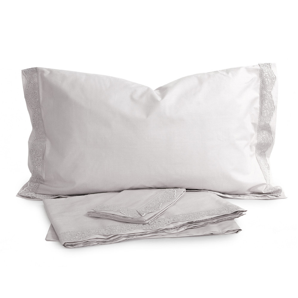 Set lenzuola matrimoniale 2 piazze LAURA BIAGIOTTI con bordo in pizzo GRIGIO PERLA