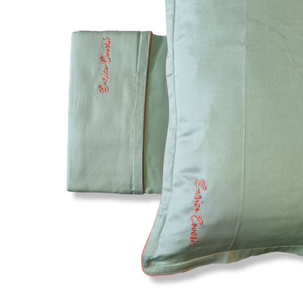 2 Federe 52 x 80 cm rifinite a piping con logo ricamato a contrasto.