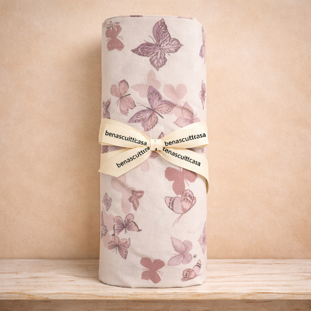 La tonalità rosa-lilla è la scelta ideale per chi vuole osare con il colore senza rinunciare all'eleganza. A differenza dei classici toni caldi, questa tonalità crea un ambiente intimo e fresco. La fantasia con le farfalle aggiunge quel tocco di evasione necessario per trasformare la stanza in un rifugio di puro relax. È un completo versatile, perfetto per chi ama viaggiare con la mente restando nel comfort di casa propria.