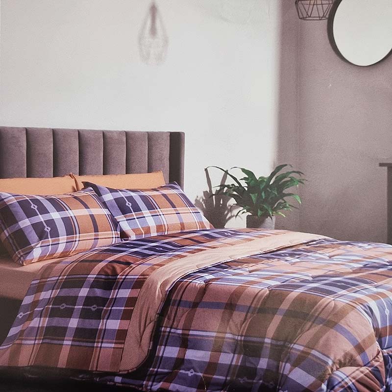 Completo lenzuola JASPER Happidea con classica stampa scozzese tartan nei toni del rosa poesca e del grigio per un completo letto in 100% cotone. Il set è composto da federe e lenzuolo sopra con stampa e lenzuolo con angoli in tinta unita coordinata altezza 25 cm.
