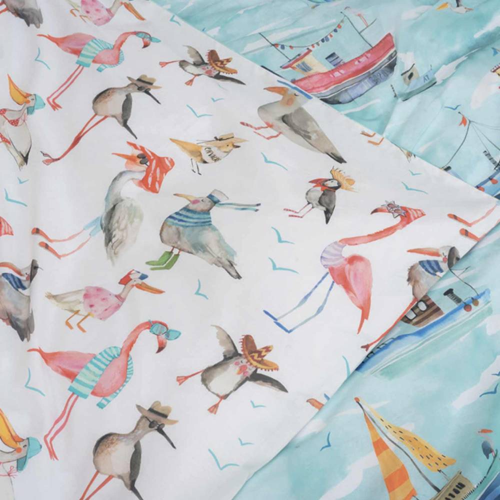 Il lenzuolo sopra è stampato con balza staccata a 60 cm e riattaccata a rovescio. Lenzuolo sotto tinta unita coordinato!