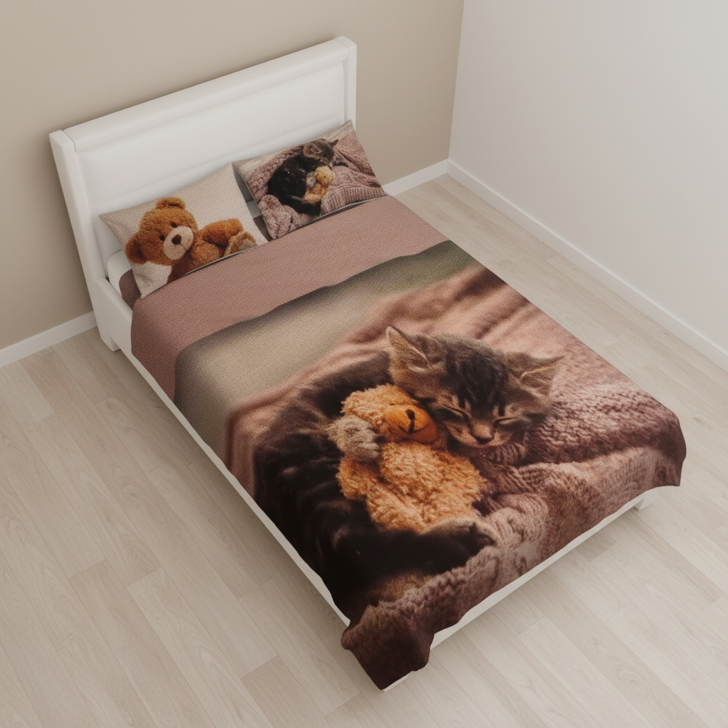La fantasia Peluche è disponibile anche in altre misure e nella versione copripiumino coordinato, per chi desidera un letto armonioso e perfettamente abbinato.