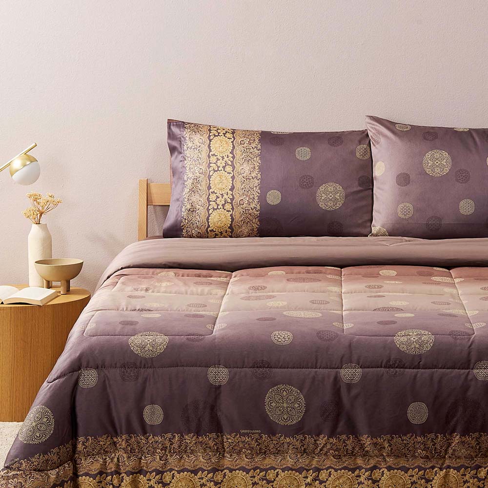 Questa trapunta è realizzata in 100% raso di puro cotone (110 fili al cm²) per il fronte, e in cotone da 57 fili al cm² per il retro, garantendo una sensazione morbida e confortevole. La stampa è effettuata con coloranti solidi, mantenendo i colori brillanti e resistenti anche dopo numerosi lavaggi. Un vero investimento in termini di stile e qualità!