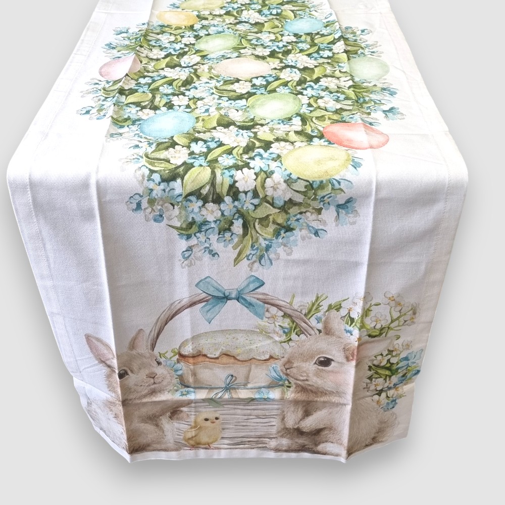 Runner Pasquale in puro cotone stampato con teneri Coniglietti.