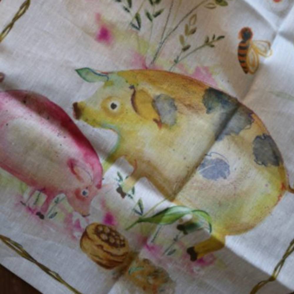 Dona un tocco di classe alla tua mise en place con questo runner da tavolo in puro lino con la stampa di animali della fattoria.