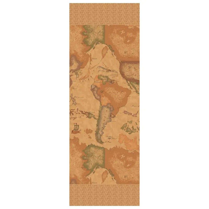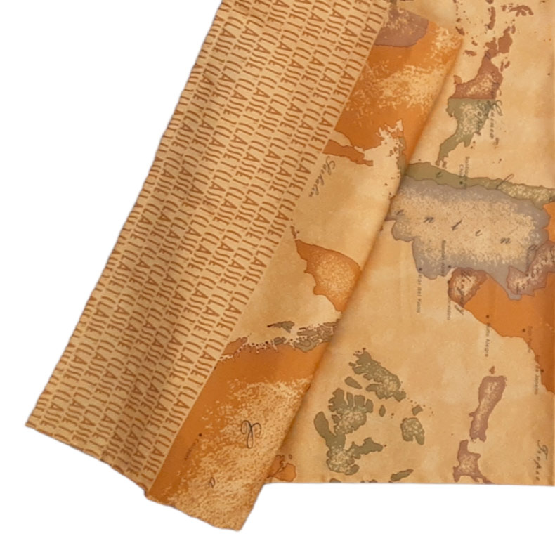 La tovaglia vis a vis Alviero Martini presenta un elegante colore di fondo ocra, che si adatta perfettamente ad ogni tipo di arredamento. Il disegno è il classico motivo Alviero Martini con la mappa del mondo disegnata in contrasto, che la rende originale e unica nel suo genere.