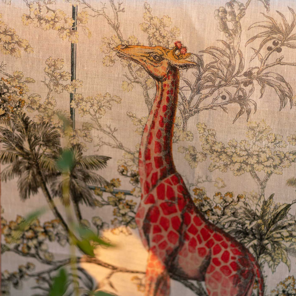 Dona un tocco di classe alla tua mise en place con questo runner da tavolo in puro lino con la stampa di animali esotici.