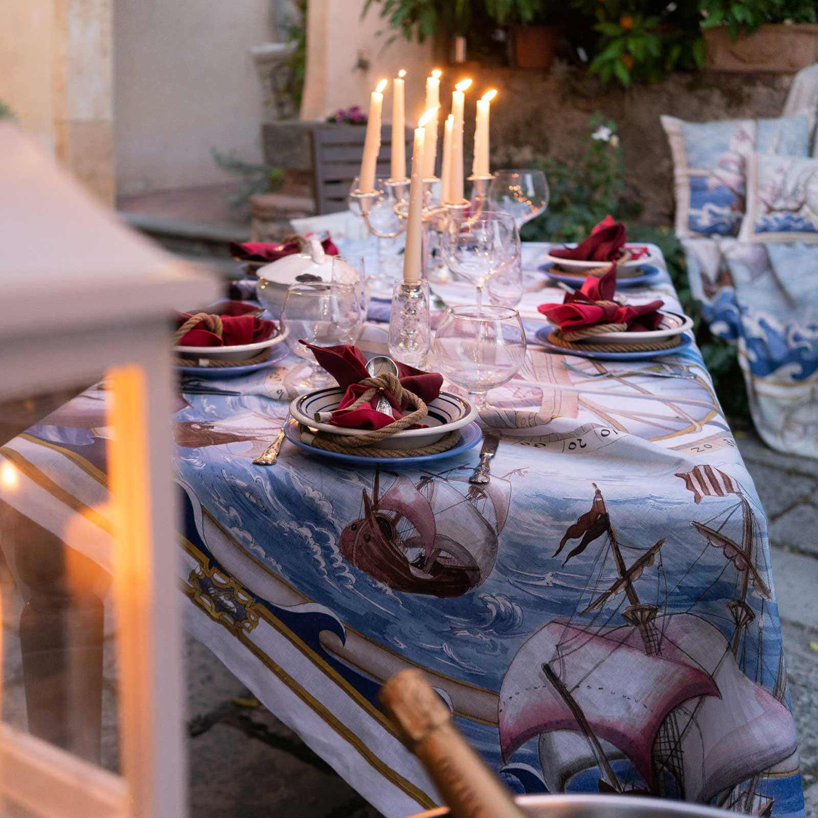 Misure disponibili: quadrata 170x170 cm - 8 persone; rettangolare 160x230 cm - 8 persone; rettangolare 170x270 cm - 12 persone; rettangolare 170x360 cm - 18 persone.