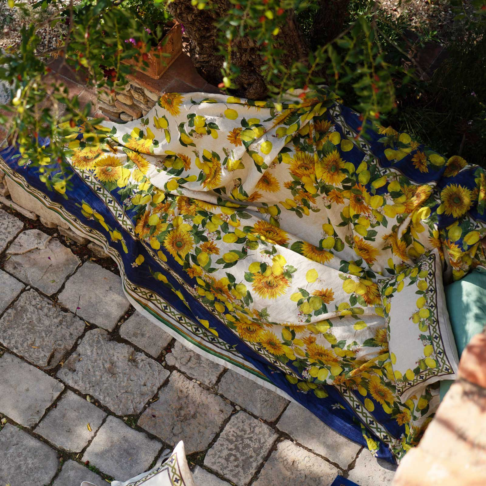 Tessuto con stampa piazzata con orlo semplice.